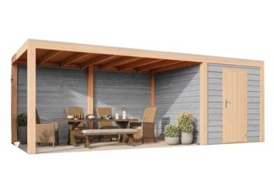 Je kunt er ook voor kiezen om een aanbouw overkapping aan je tuinhuis te plaatsen. Een overkapping met een tuinhuis is een prachtige toevoeging aan je tuin. Je creëert dan eigenlijk een uitbouw met extra overdekte ruimte en er zijn talloze mogelijkheden om de ruimte in te zetten. Zo kun je er bijvoorbeeld een buitenkantoor van maken, een atelier of een hobbyruimte. In het tuinhuis gedeelte kun je je gereedschap en spullen bewaren en in het aanbouwgedeelte kun je lekker aan de slag gaan. Ben je op zoek naar een overkapping met een tuinhuis? Kijk dan snel verder.